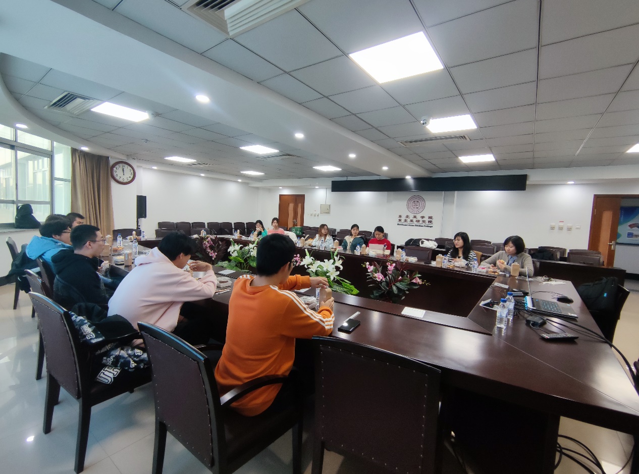为深入了解我院2021级本科生步入大三年级后学习生活各方面的反馈,使学生们对毕业后安排提前思考和规划,及时为同学们答疑解惑,学院于1027日中午在东荣大厦404会议室举办了“东北院学院2021级师生午餐会”。学院经济系李天籽老师、赵杨老师,本科生辅导员贾琼老师以及2021级本科生代表参与了此次冷藏会。